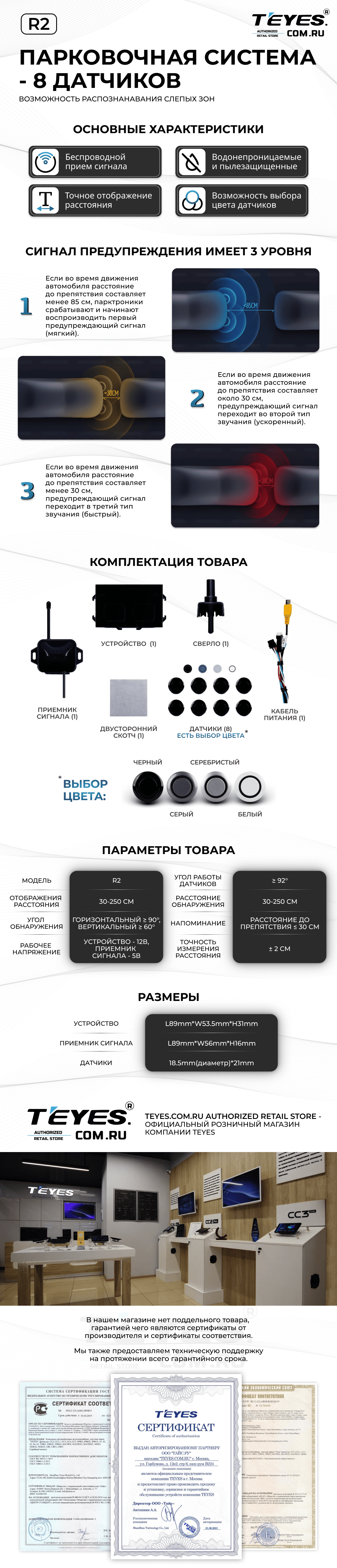 Передние и задние парктроники Teyes R2 для CC3 / CC2 Plus / SPRO Plus / TPRO2 (Белые) 8-датчиков - купить всего за 19 900 руб. в интернет-магазине в Воронеже Teyes.com.ru. ✓ Самый лучший выбор мультимедиа ✓ Лучшая замена штатному ГУ ✓ Тел. +7 (800) 775-31-74