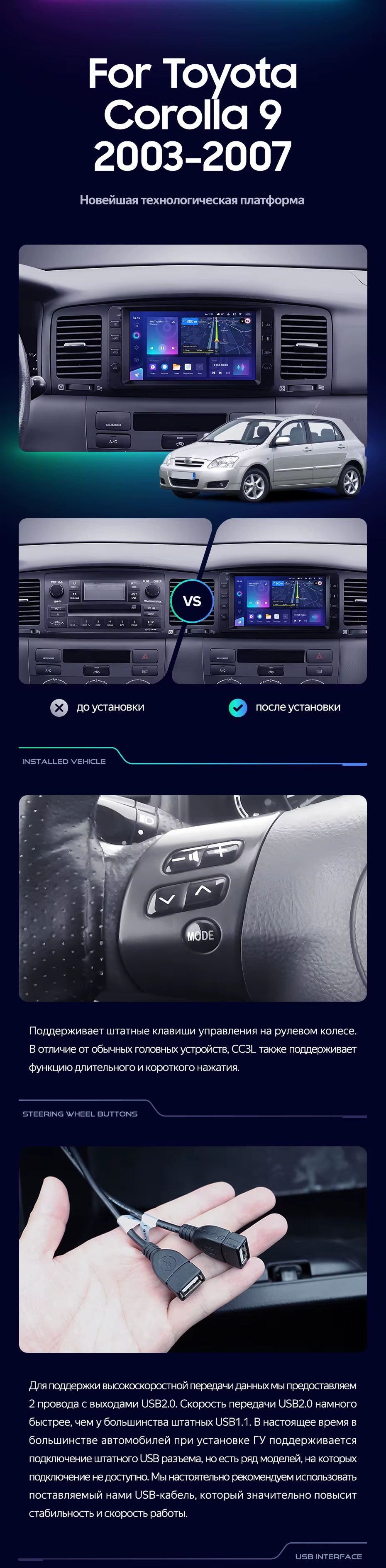 Переходная рамка Toyota Corolla 9 E120 E130 (2003-2007) (7") - купить всего за 3 800 руб. в интернет-магазине в Воронеже Teyes.com.ru. ✓ Самый лучший выбор мультимедиа ✓ Лучшая замена штатному ГУ ✓ Тел. +7 (800) 775-31-74