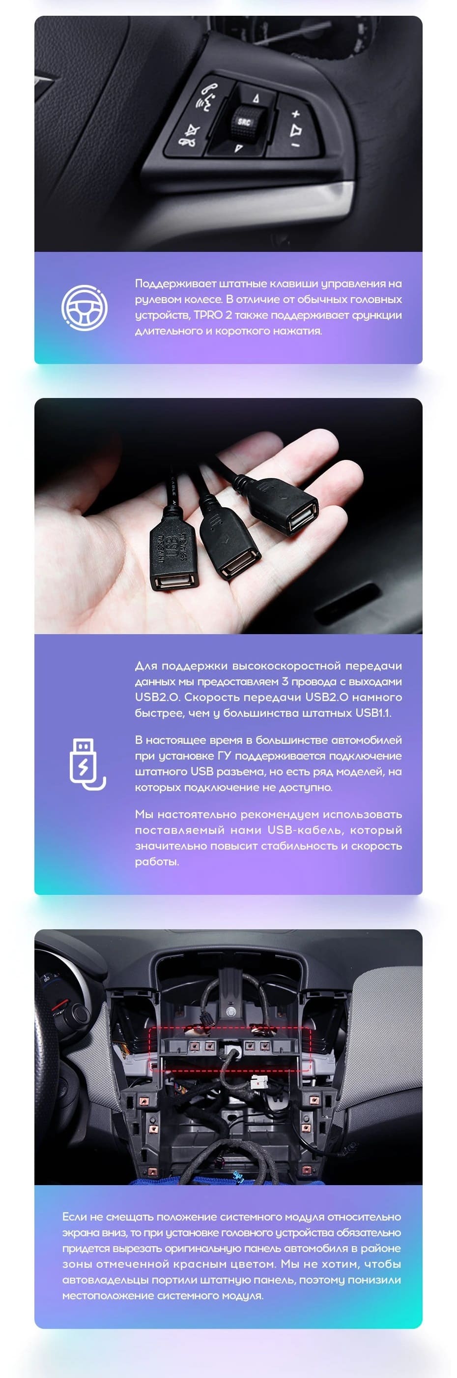 Автомагнитола Teyes TPRO 2 с первых минут эксплуатации навсегда изменит ваше представление о комфортной, безопасной езде. Эта модель в прямом смысле напичкана инновационными разработками из мира интеллектуального управления и штатных автомобильных контроллеров. С таким апгрейдом ваш автомобиль превратится в новейшую мультимедийную систему, которая может практически всё.