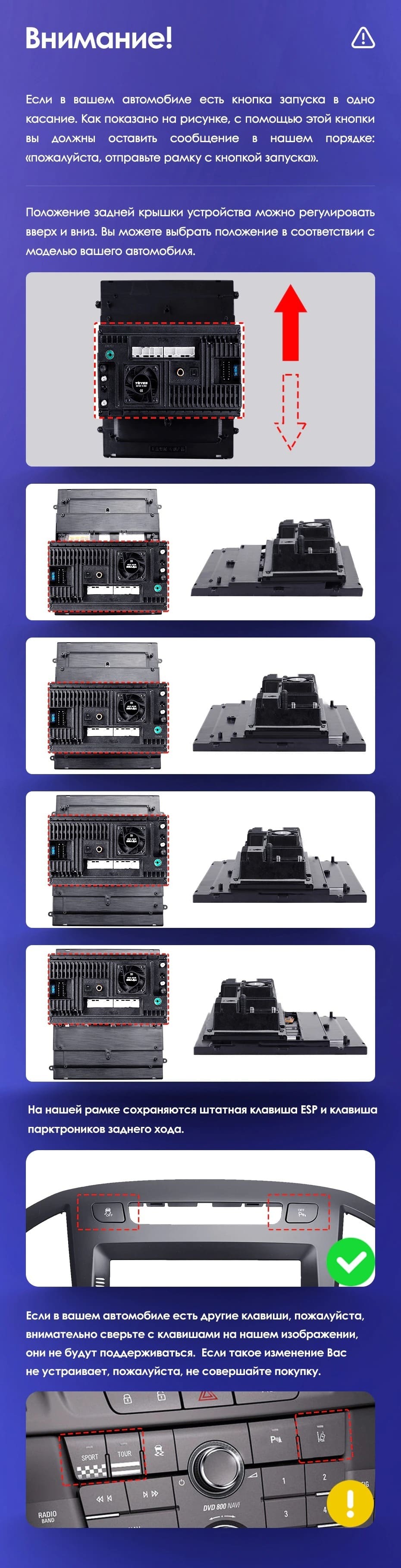 Вертикальная установка магнитолы закрывается специальной рамкой под определённый автомобиль. Утончённый, лаконичный дизайн Teyes TPRO 2 подойдёт под любую премиальную обшивку салона. Большой выбор цветовых решений интерфейса позволяет создавать индивидуальное оформление, чтобы мерцания и анимации на мониторе не отвлекали от езды. Teyes TPRO 2 - это симбиоз передовых технологий, созданный для вашего комфорта и безопасности.