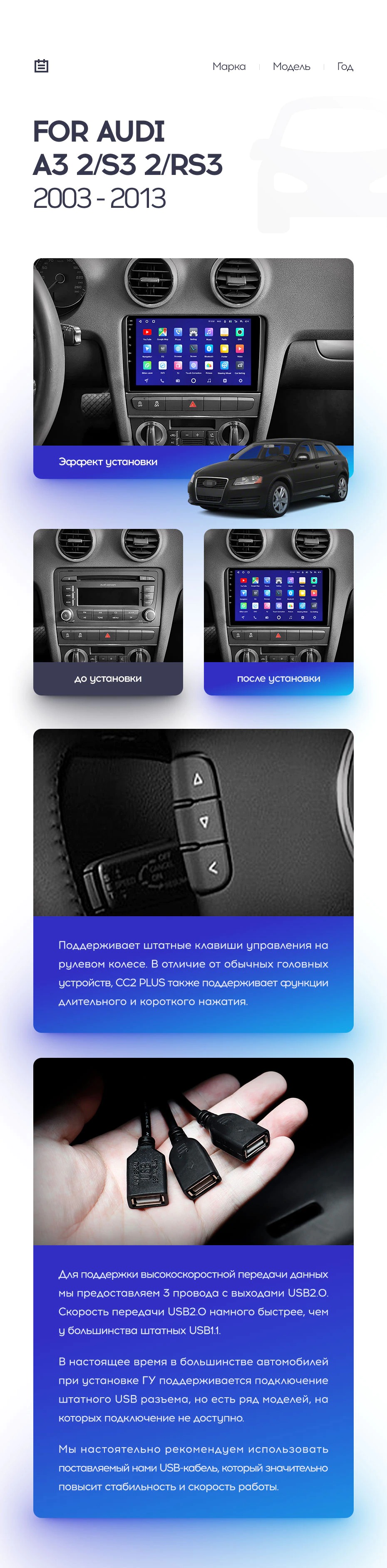 Штатная магнитола Teyes CC2 Plus 4/32 Audi A3 2 8P (2003-2013) - купить всего за 34 400 руб. в интернет-магазине в Воронеже Teyes.com.ru. ✓ Самый лучший выбор мультимедиа ✓ Лучшая замена штатному ГУ ✓ Тел. +7 (800) 775-31-74