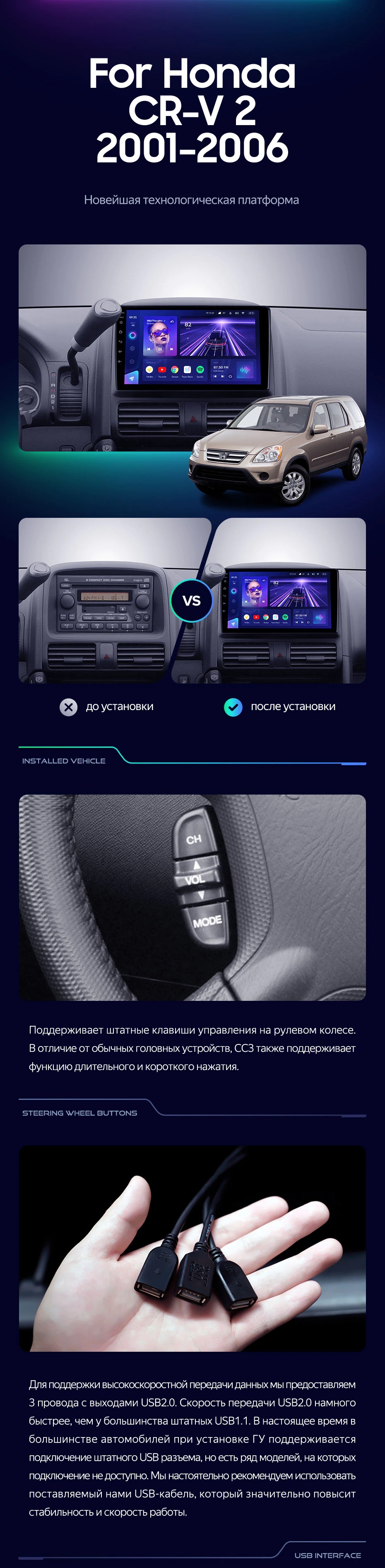 Штатная магнитола Teyes CC3 2K 4/32 Honda CR-V 2 (2001-2006) - купить всего за 43 540 руб. в интернет-магазине в Воронеже Teyes.com.ru. ✓ Самый лучший выбор мультимедиа ✓ Лучшая замена штатному ГУ ✓ Тел. +7 (800) 775-31-74