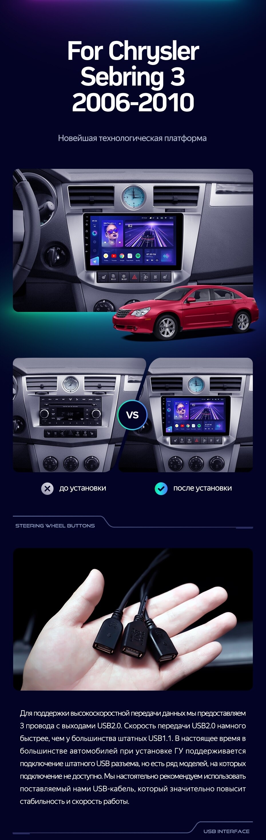 Штатная магнитола Teyes CC3 2K 360 6/128 Chrysler Sebring 3 JS (2006-2010) (13") - купить всего за 63 900 руб. в интернет-магазине в Воронеже Teyes.com.ru. ✓ Самый лучший выбор мультимедиа ✓ Лучшая замена штатному ГУ ✓ Тел. +7 (800) 775-31-74