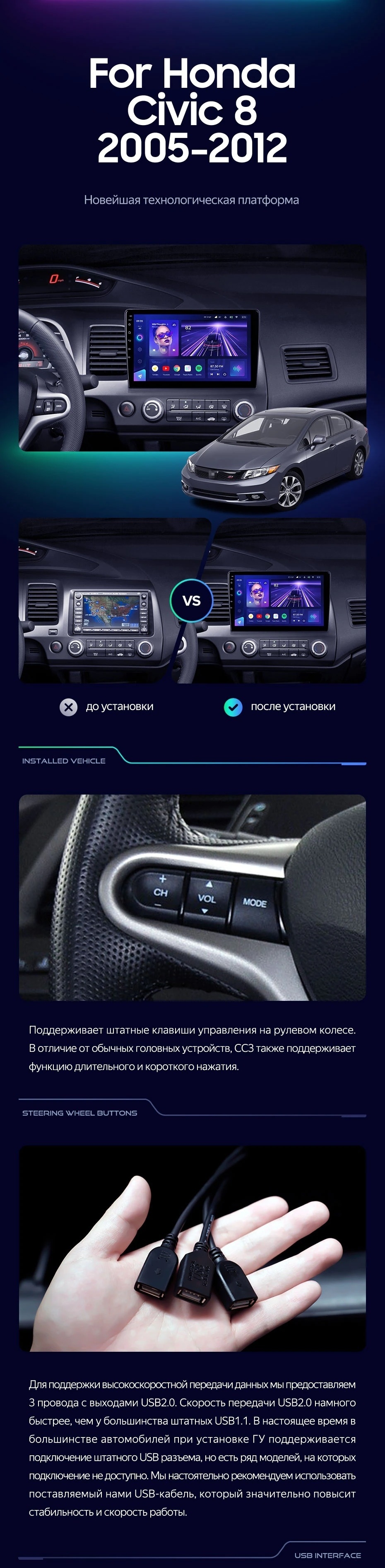 Штатная магнитола Teyes CC3 2K 360 6/128 Honda Civic 8 FK FN FD (2005-2012) - купить всего за 50 900 руб. в интернет-магазине в Воронеже Teyes.com.ru. ✓ Самый лучший выбор мультимедиа ✓ Лучшая замена штатному ГУ ✓ Тел. +7 (800) 775-31-74