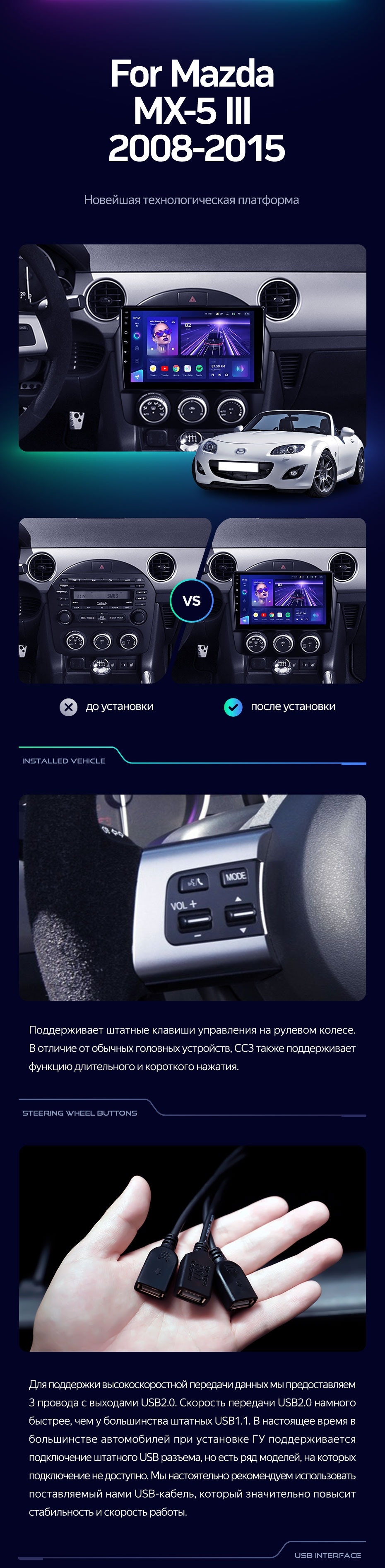Штатная магнитола Teyes CC3 2K 360 6/128 Mazda MX-5 (2008-2015) - купить всего за 58 990 руб. в интернет-магазине в Воронеже Teyes.com.ru. ✓ Самый лучший выбор мультимедиа ✓ Лучшая замена штатному ГУ ✓ Тел. +7 (800) 775-31-74