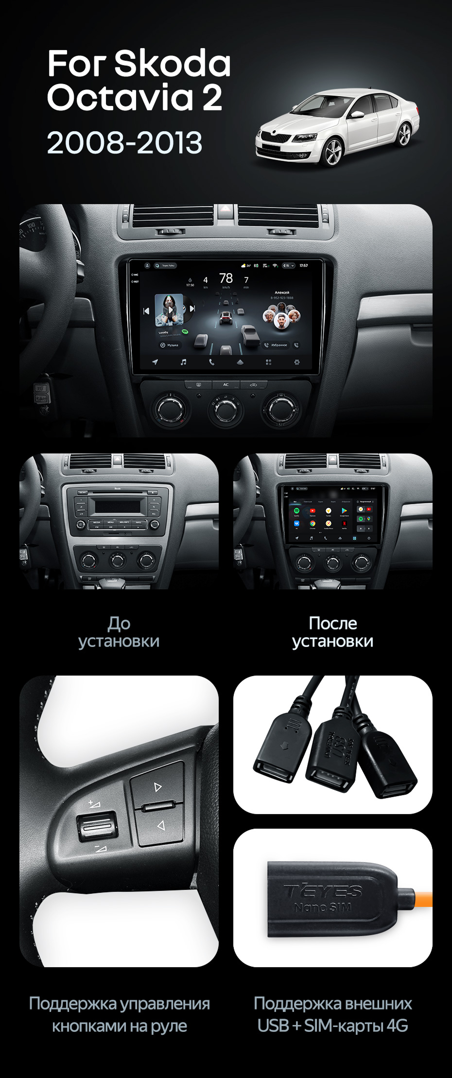 Штатная магнитола Teyes CC4 Pro 8/128 Skoda Octavia 2 A5 (2008-2013) (13") - купить всего за 71 640 руб. в интернет-магазине в Воронеже Teyes.com.ru. ✓ Самый лучший выбор мультимедиа ✓ Лучшая замена штатному ГУ ✓ Тел. +7 (800) 775-31-74