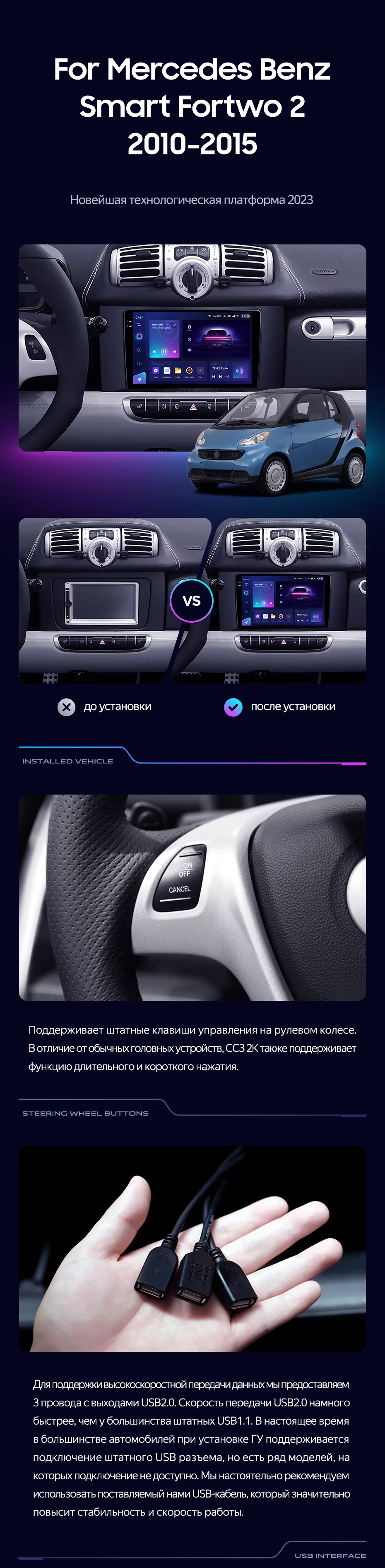 Штатная магнитола Teyes CC3 2K 4/32 Mercedes-Benz Smart Fortwo 2 (2010-2015) F1 - купить всего за 38 500 руб. в интернет-магазине в Воронеже Teyes.com.ru. ✓ Самый лучший выбор мультимедиа ✓ Лучшая замена штатному ГУ ✓ Тел. +7 (800) 775-31-74