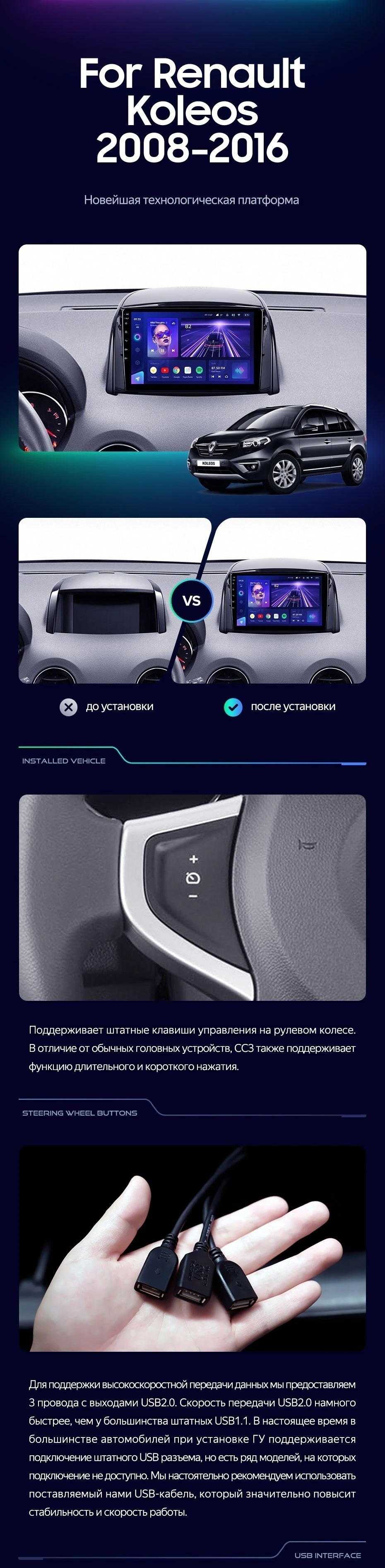 Штатная магнитола Teyes CC3 2K 4/64 Renault Koleos (2008-2016) Тип-A - купить всего за 49 680 руб. в интернет-магазине в Воронеже Teyes.com.ru. ✓ Самый лучший выбор мультимедиа ✓ Лучшая замена штатному ГУ ✓ Тел. +7 (800) 775-31-74