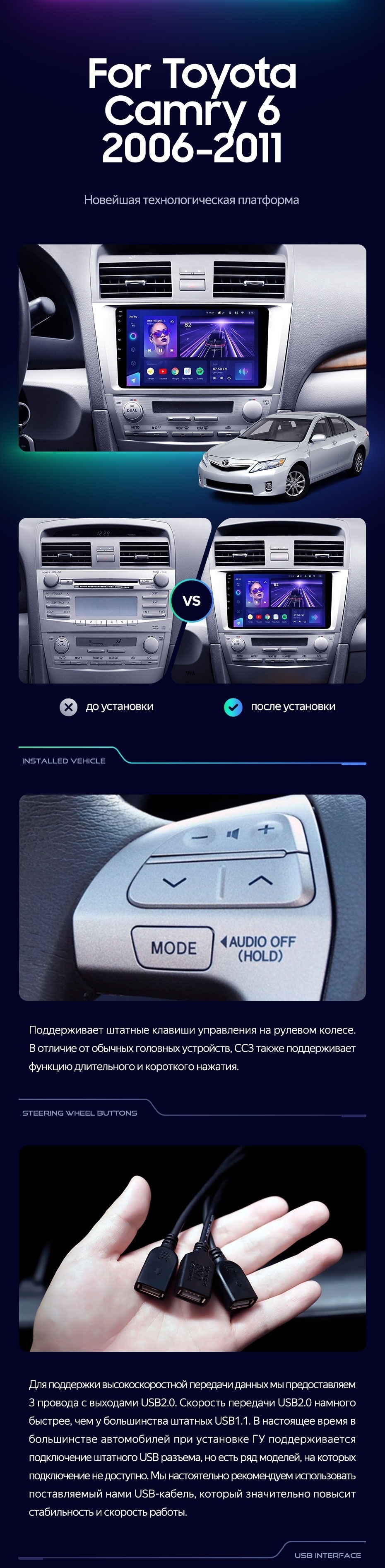 Штатная магнитола Teyes CC3 2K 4/64 Toyota Camry 6 XV 40 (2006-2011) 10" F5 - купить всего за 48 150 руб. в интернет-магазине в Воронеже Teyes.com.ru. ✓ Самый лучший выбор мультимедиа ✓ Лучшая замена штатному ГУ ✓ Тел. +7 (800) 775-31-74