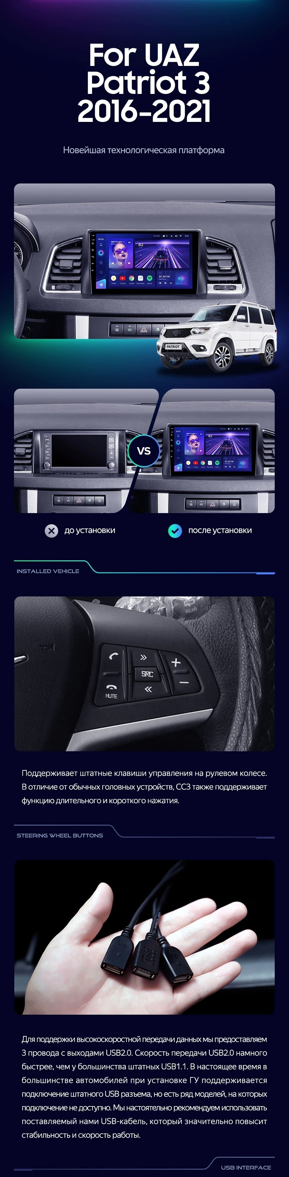 Штатная магнитола Teyes CC3 2K 4/64 UAZ Patriot 3 (2016-2021) F2 - купить всего за 46 550 руб. в интернет-магазине в Воронеже Teyes.com.ru. ✓ Самый лучший выбор мультимедиа ✓ Лучшая замена штатному ГУ ✓ Тел. +7 (800) 775-31-74