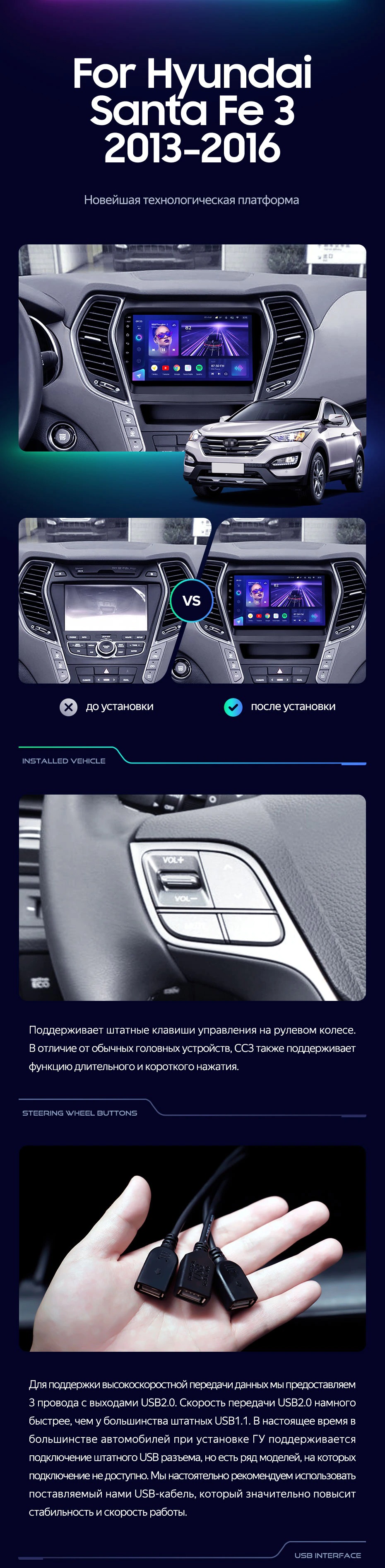 Штатная магнитола Teyes CC3 2K 6/128 Hyundai Santa Fe 3 (2013-2016) Тип-A - купить всего за 51 300 руб. в интернет-магазине в Воронеже Teyes.com.ru. ✓ Самый лучший выбор мультимедиа ✓ Лучшая замена штатному ГУ ✓ Тел. +7 (800) 775-31-74