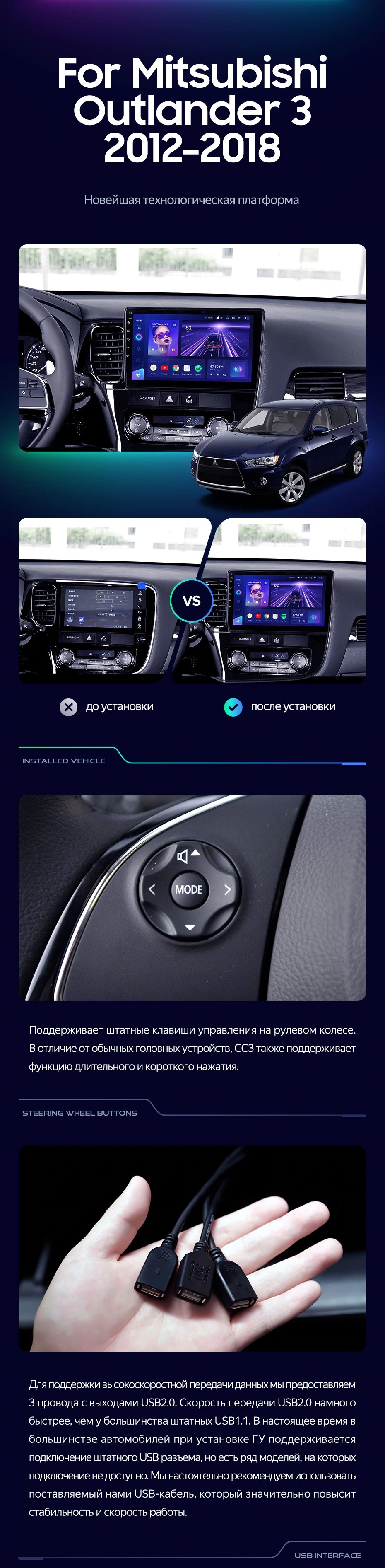 Штатная магнитола Teyes CC3 2K 6/128 Mitsubishi Outlander 3 (2012-2018) Тип-B - купить всего за 54 250 руб. в интернет-магазине в Воронеже Teyes.com.ru. ✓ Самый лучший выбор мультимедиа ✓ Лучшая замена штатному ГУ ✓ Тел. +7 (800) 775-31-74