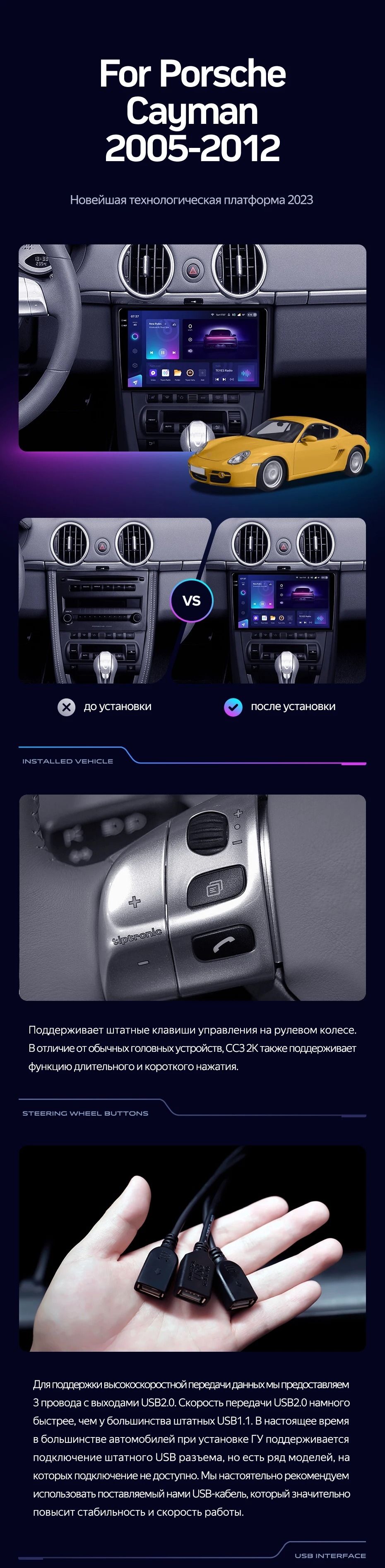 Штатная магнитола Teyes CC3 2K 6/128 Porsche Cayman 987 (2005-2012) (13" с кнопками) - купить всего за 68 500 руб. в интернет-магазине в Воронеже Teyes.com.ru. ✓ Самый лучший выбор мультимедиа ✓ Лучшая замена штатному ГУ ✓ Тел. +7 (800) 775-31-74