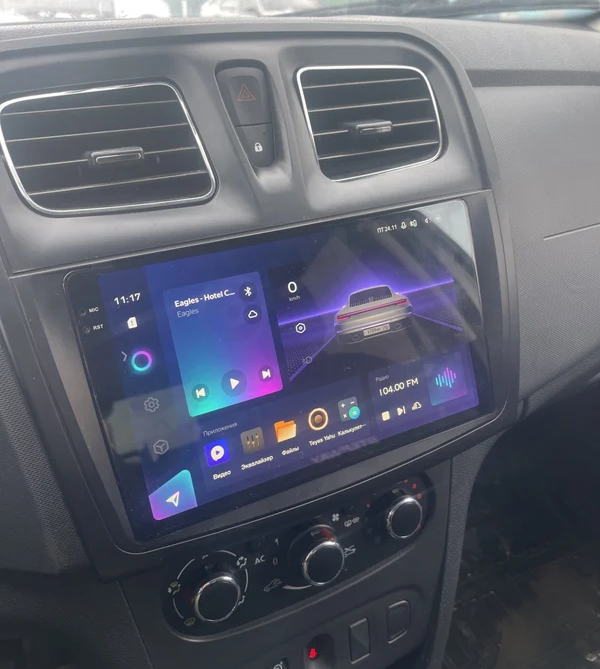 Защитное стекло 2,5D имеет слегка скругленные грани. Эта особенность делает его практически незаметным в районе краев экрана магнитолы, где он ограничен рамками корпуса.