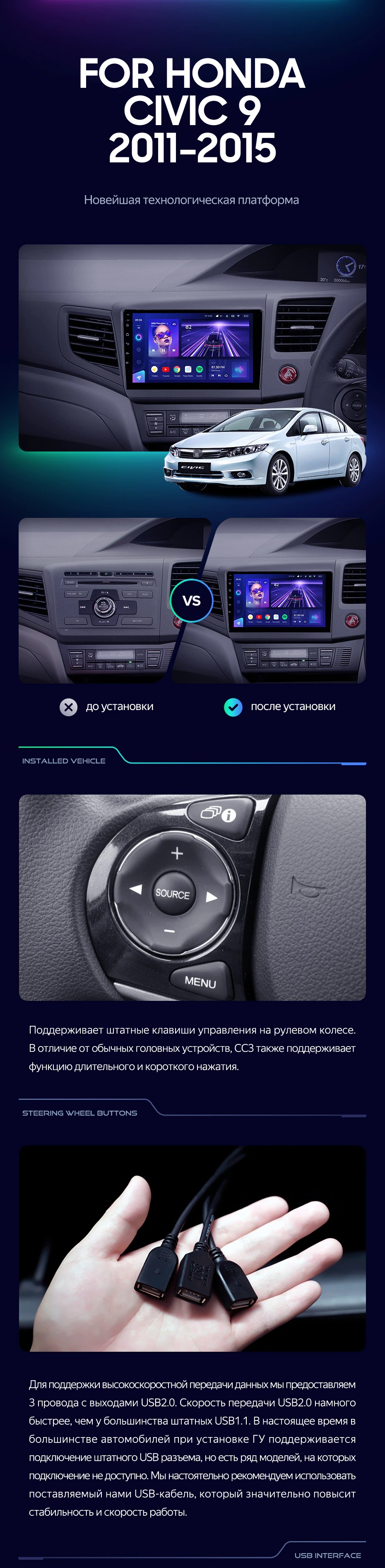 Штатная магнитола Teyes CC3 4/32 Honda Civic 9 FB FK FD (2011-2015) - купить всего за 39 190 руб. в интернет-магазине в Воронеже Teyes.com.ru. ✓ Самый лучший выбор мультимедиа ✓ Лучшая замена штатному ГУ ✓ Тел. +7 (800) 775-31-74