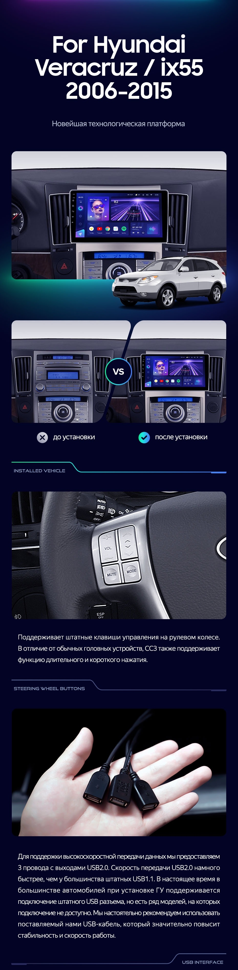 Штатная магнитола Teyes CC3 4/32 Hyundai ix55 (2006-2015) - купить всего за 39 500 руб. в интернет-магазине в Воронеже Teyes.com.ru. ✓ Самый лучший выбор мультимедиа ✓ Лучшая замена штатному ГУ ✓ Тел. +7 (800) 775-31-74