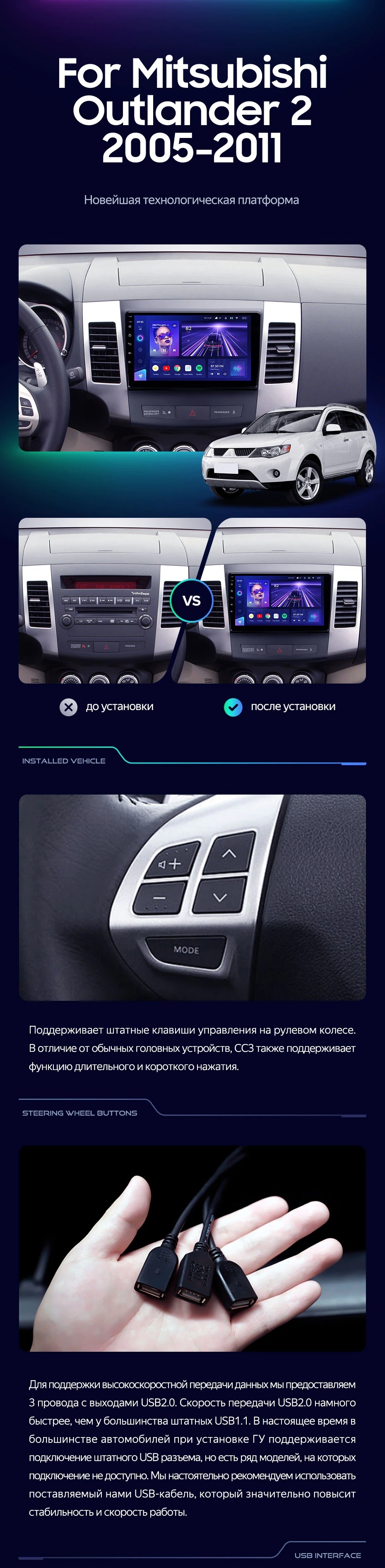 Штатная магнитола Teyes CC3 4/32 Mitsubishi Outlander 2 (2005-2011) Тип-B - купить всего за 36 190 руб. в интернет-магазине в Воронеже Teyes.com.ru. ✓ Самый лучший выбор мультимедиа ✓ Лучшая замена штатному ГУ ✓ Тел. +7 (800) 775-31-74