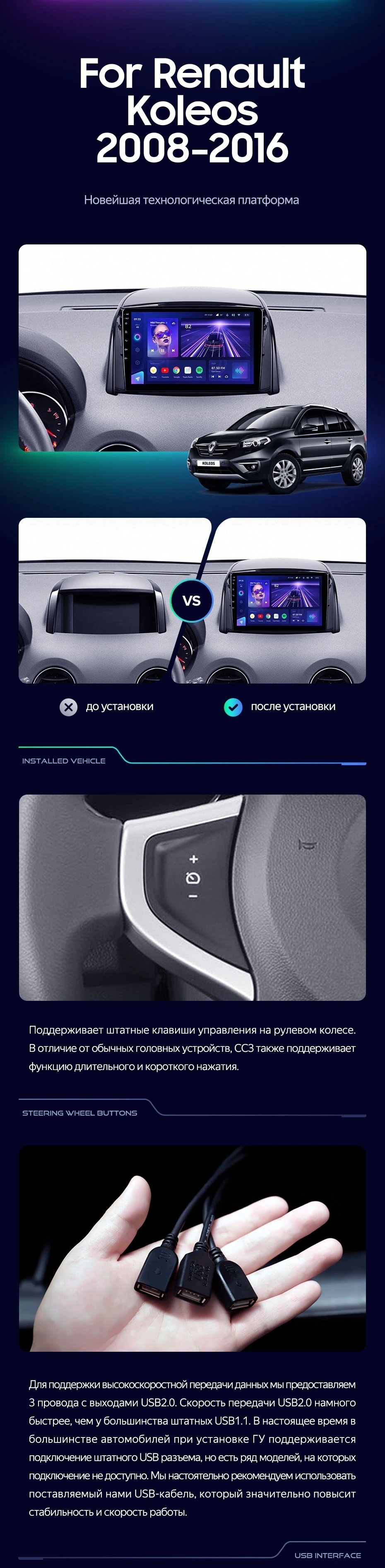 Штатная магнитола Teyes CC3 4/32 Renault Koleos (2008-2016) Тип-B - купить всего за 39 000 руб. в интернет-магазине в Воронеже Teyes.com.ru. ✓ Самый лучший выбор мультимедиа ✓ Лучшая замена штатному ГУ ✓ Тел. +7 (800) 775-31-74
