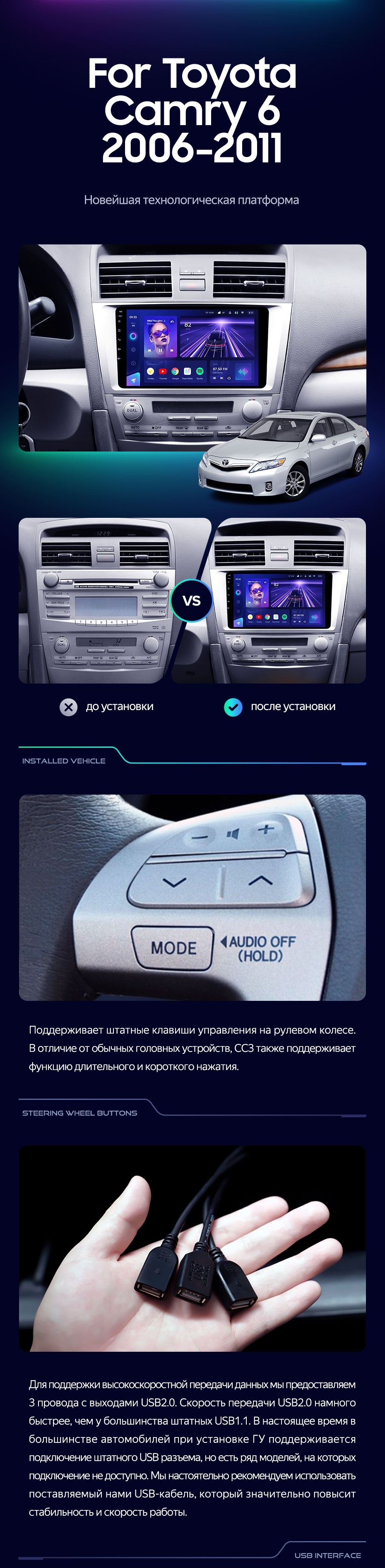 Штатная магнитола Teyes CC3 4/32 Toyota Camry 6 XV 40 (2006-2011) 10" F5 - купить всего за 41 650 руб. в интернет-магазине в Воронеже Teyes.com.ru. ✓ Самый лучший выбор мультимедиа ✓ Лучшая замена штатному ГУ ✓ Тел. +7 (800) 775-31-74