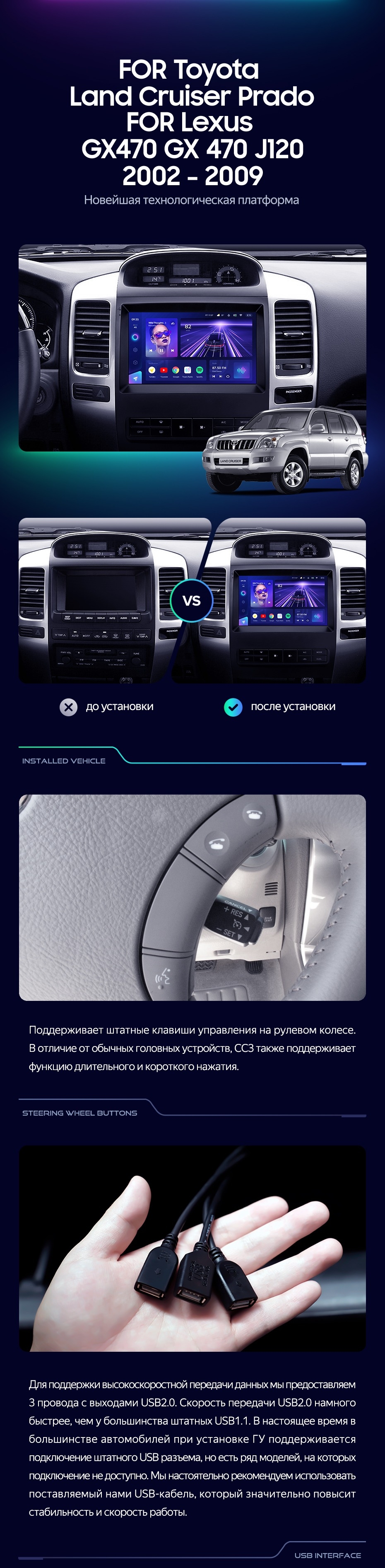Штатная магнитола Teyes CC3 4/64 Toyota Land Cruiser Prado J120 (2002-2009) F1 Тип-A - купить всего за 42 000 руб. в интернет-магазине в Воронеже Teyes.com.ru. ✓ Самый лучший выбор мультимедиа ✓ Лучшая замена штатному ГУ ✓ Тел. +7 (800) 775-31-74