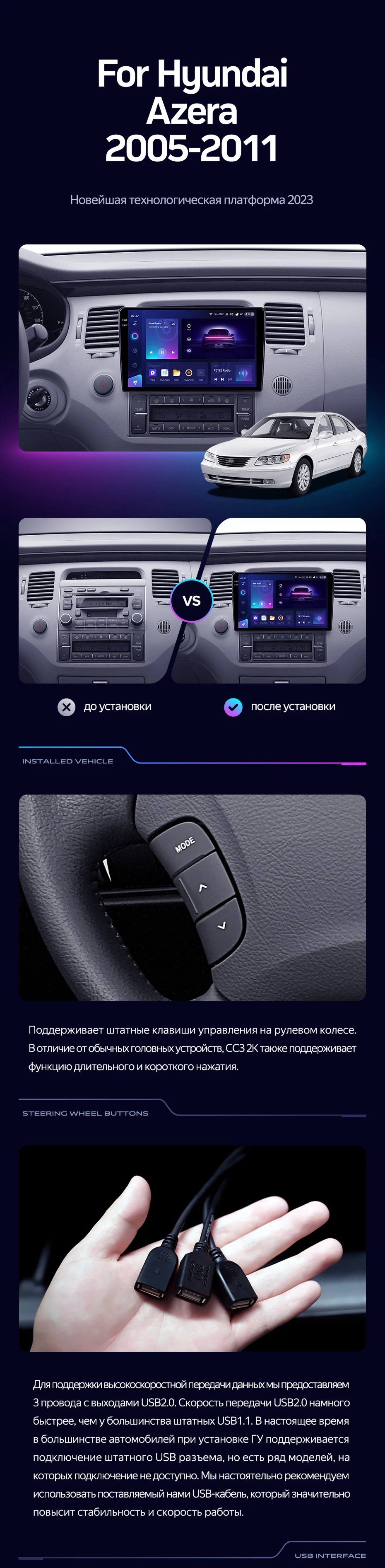 Штатная магнитола Teyes CC3L 4/32 Hyundai Azera (2005-2011) - купить всего за 27 600 руб. в интернет-магазине в Воронеже Teyes.com.ru. ✓ Самый лучший выбор мультимедиа ✓ Лучшая замена штатному ГУ ✓ Тел. +7 (800) 775-31-74