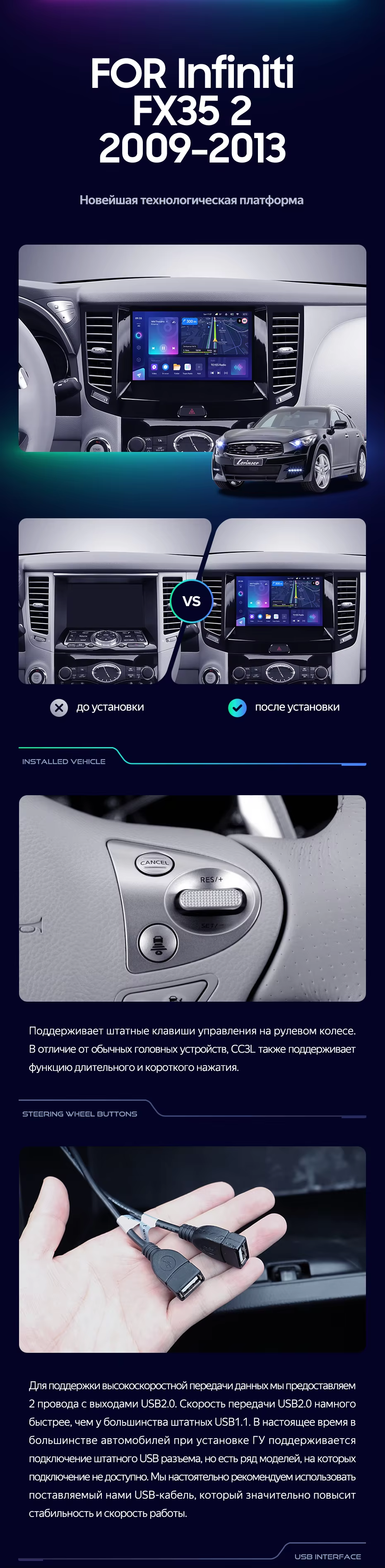 Штатная магнитола Teyes CC3L 4/32 Infiniti FX35 2 (2009-2013) Тип-B - купить всего за 32 800 руб. в интернет-магазине в Воронеже Teyes.com.ru. ✓ Самый лучший выбор мультимедиа ✓ Лучшая замена штатному ГУ ✓ Тел. +7 (800) 775-31-74