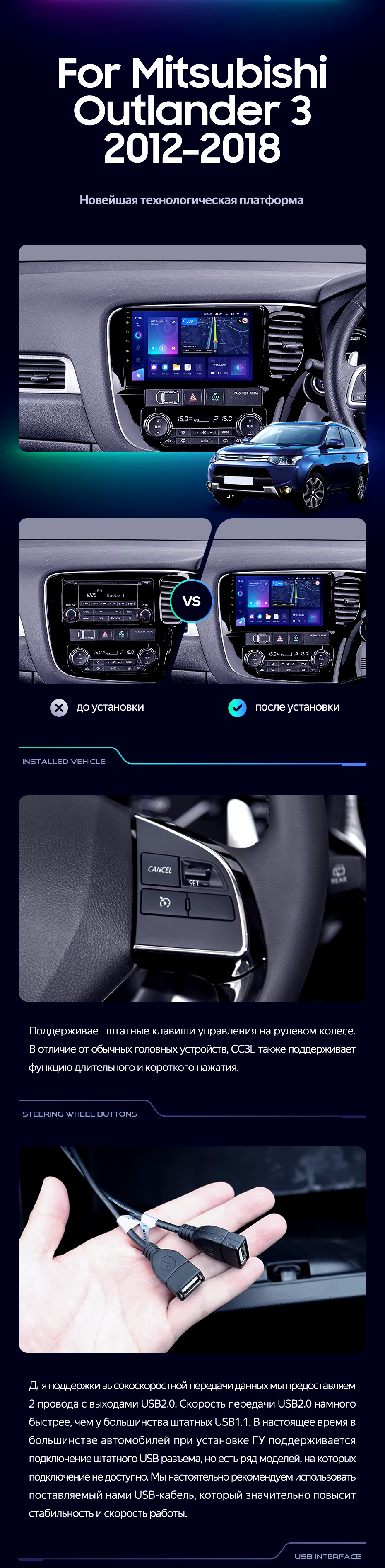 Штатная магнитола Teyes CC3L 4/32 Mitsubishi Outlander 3 GF0W GG0W (2012-2018) Тип-A Правый руль - купить всего за 28 300 руб. в интернет-магазине в Воронеже Teyes.com.ru. ✓ Самый лучший выбор мультимедиа ✓ Лучшая замена штатному ГУ ✓ Тел. +7 (800) 775-31-74