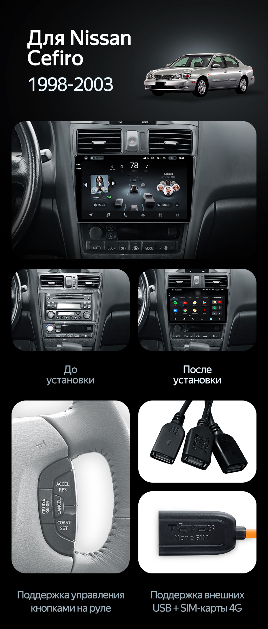 Штатная магнитола Teyes CC3L 4/32 Nissan Cefiro 3 A33 (1998-2003) F2 - купить всего за 25 900 руб. в интернет-магазине в Воронеже Teyes.com.ru. ✓ Самый лучший выбор мультимедиа ✓ Лучшая замена штатному ГУ ✓ Тел. +7 (800) 775-31-74