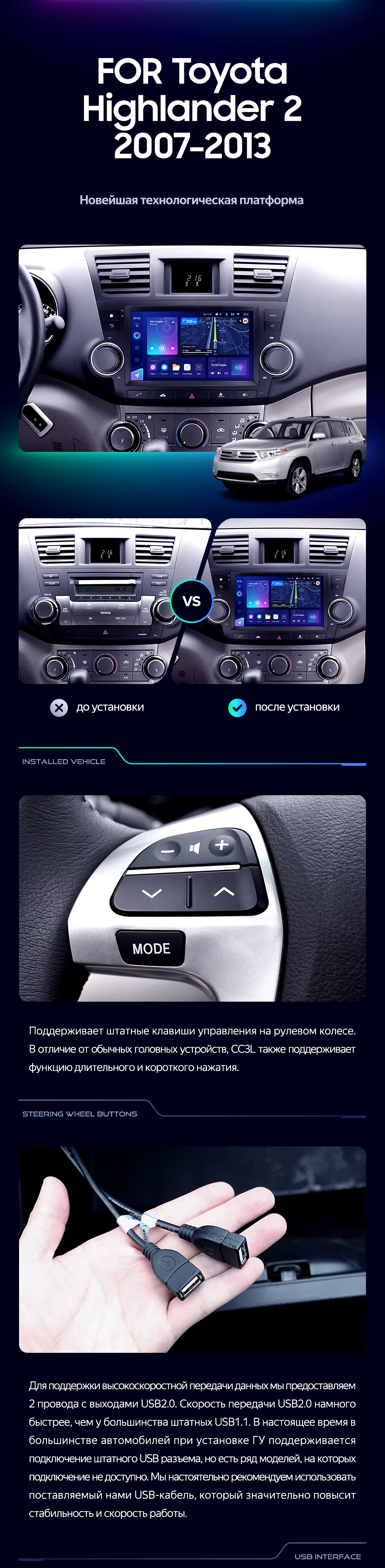 Штатная магнитола Teyes CC3L 4/32 Toyota Highlander 2 XU40 (2007-2013) F3 9" - купить всего за 28 000 руб. в интернет-магазине в Воронеже Teyes.com.ru. ✓ Самый лучший выбор мультимедиа ✓ Лучшая замена штатному ГУ ✓ Тел. +7 (800) 775-31-74