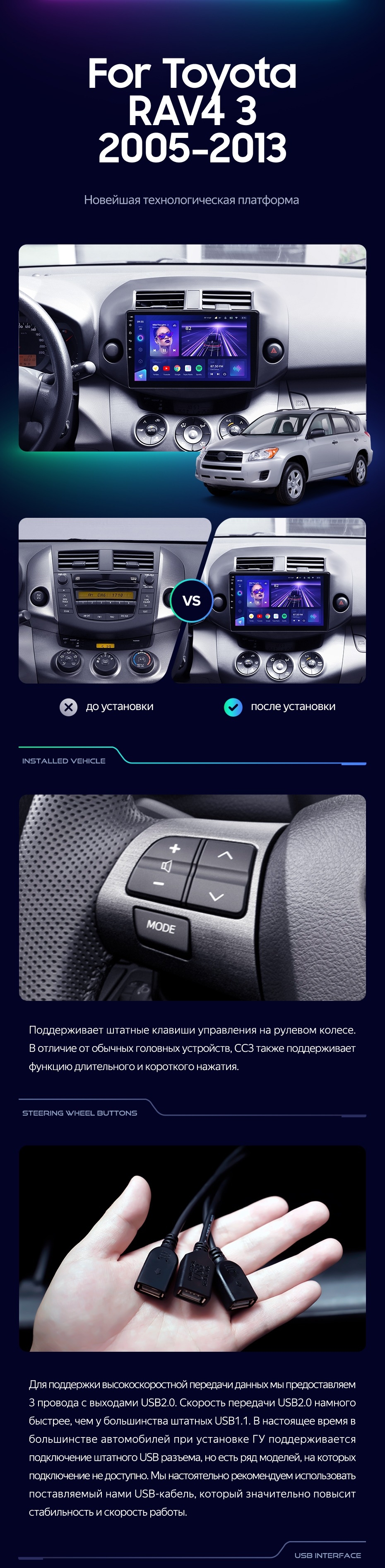 Штатная магнитола Teyes CC3L 4/32 Toyota RAV4 3 XA30 (2005-2013) F2 10" - купить всего за 27 130 руб. в интернет-магазине в Воронеже Teyes.com.ru. ✓ Самый лучший выбор мультимедиа ✓ Лучшая замена штатному ГУ ✓ Тел. +7 (800) 775-31-74