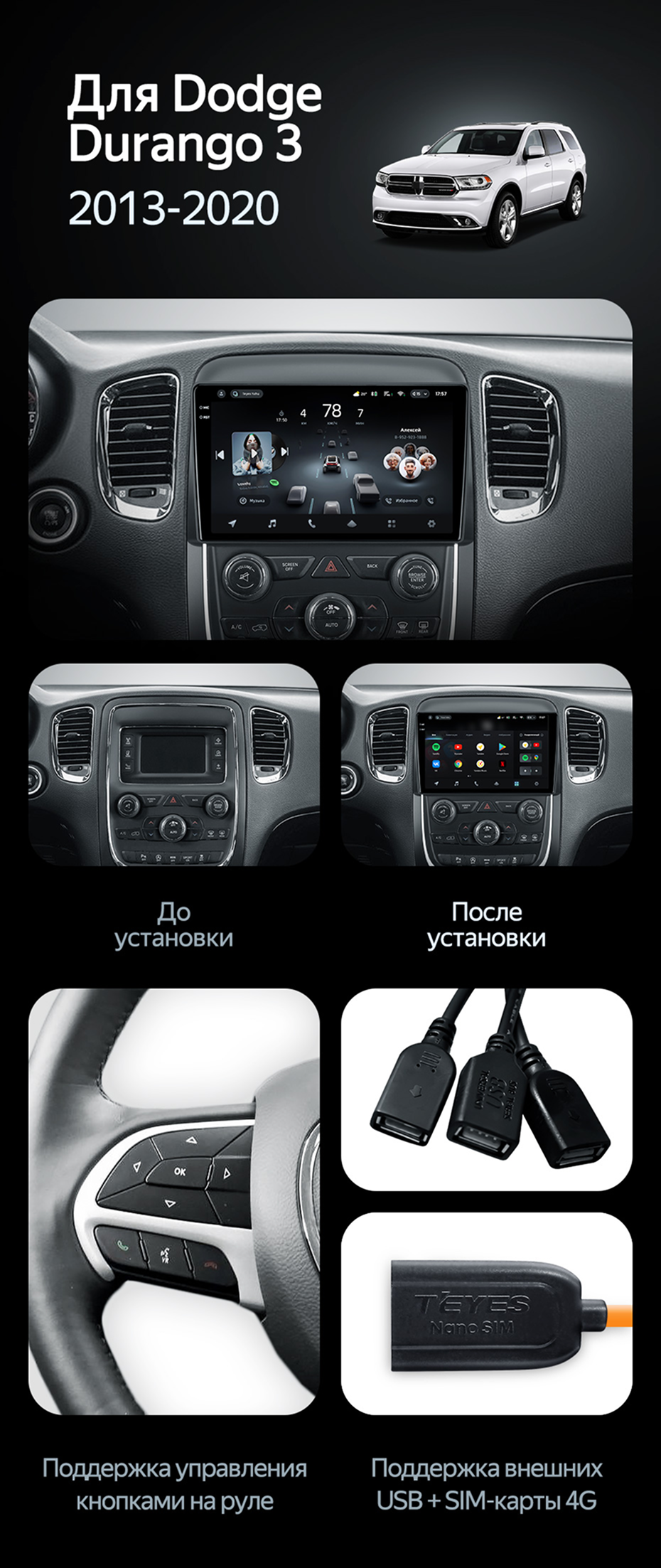 Штатная магнитола Teyes CC3L WiFi 2/32 Dodge Durango 3 (2013-2020) - купить всего за 24 900 руб. в интернет-магазине в Воронеже Teyes.com.ru. ✓ Самый лучший выбор мультимедиа ✓ Лучшая замена штатному ГУ ✓ Тел. +7 (800) 775-31-74