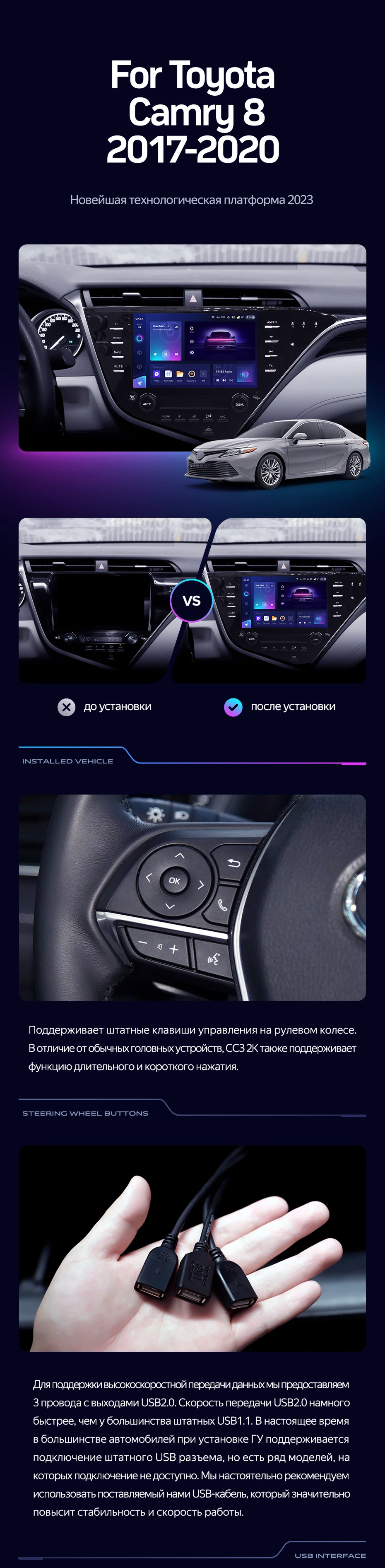 Штатная магнитола Teyes CC3L WiFi 2/32 Toyota Camry 8 XV 70 (2017-2020) F2 - купить всего за 37 300 руб. в интернет-магазине в Воронеже Teyes.com.ru. ✓ Самый лучший выбор мультимедиа ✓ Лучшая замена штатному ГУ ✓ Тел. +7 (800) 775-31-74