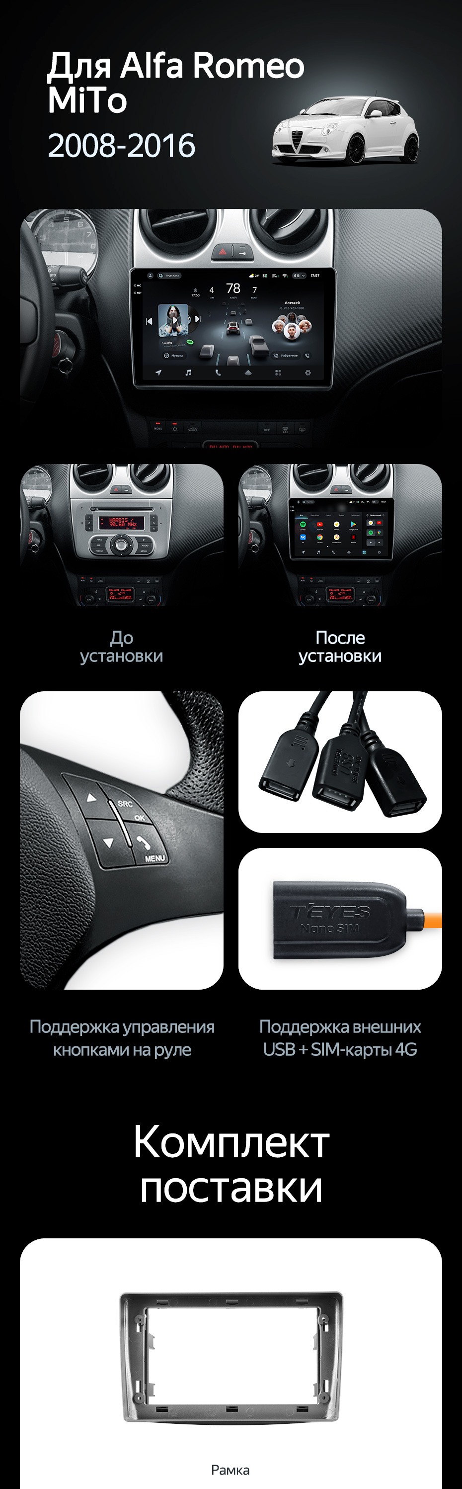 Штатная магнитола Teyes CC4 Pro 12/256 Alfa Romeo MiTo 955 (2008-2016) - купить всего за 76 430 руб. в интернет-магазине в Воронеже Teyes.com.ru. ✓ Самый лучший выбор мультимедиа ✓ Лучшая замена штатному ГУ ✓ Тел. +7 (800) 775-31-74