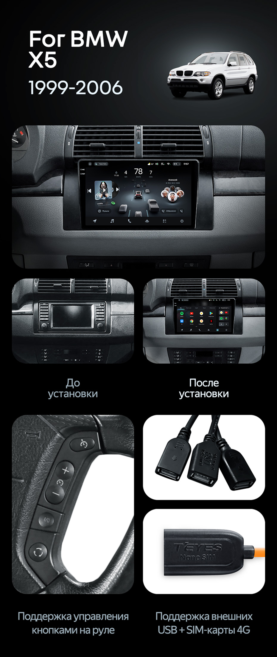 Штатная магнитола Teyes CC4 Pro 12/256 BMW X5 E39 E53 (1999-2006) - купить всего за 74 780 руб. в интернет-магазине в Воронеже Teyes.com.ru. ✓ Самый лучший выбор мультимедиа ✓ Лучшая замена штатному ГУ ✓ Тел. +7 (800) 775-31-74