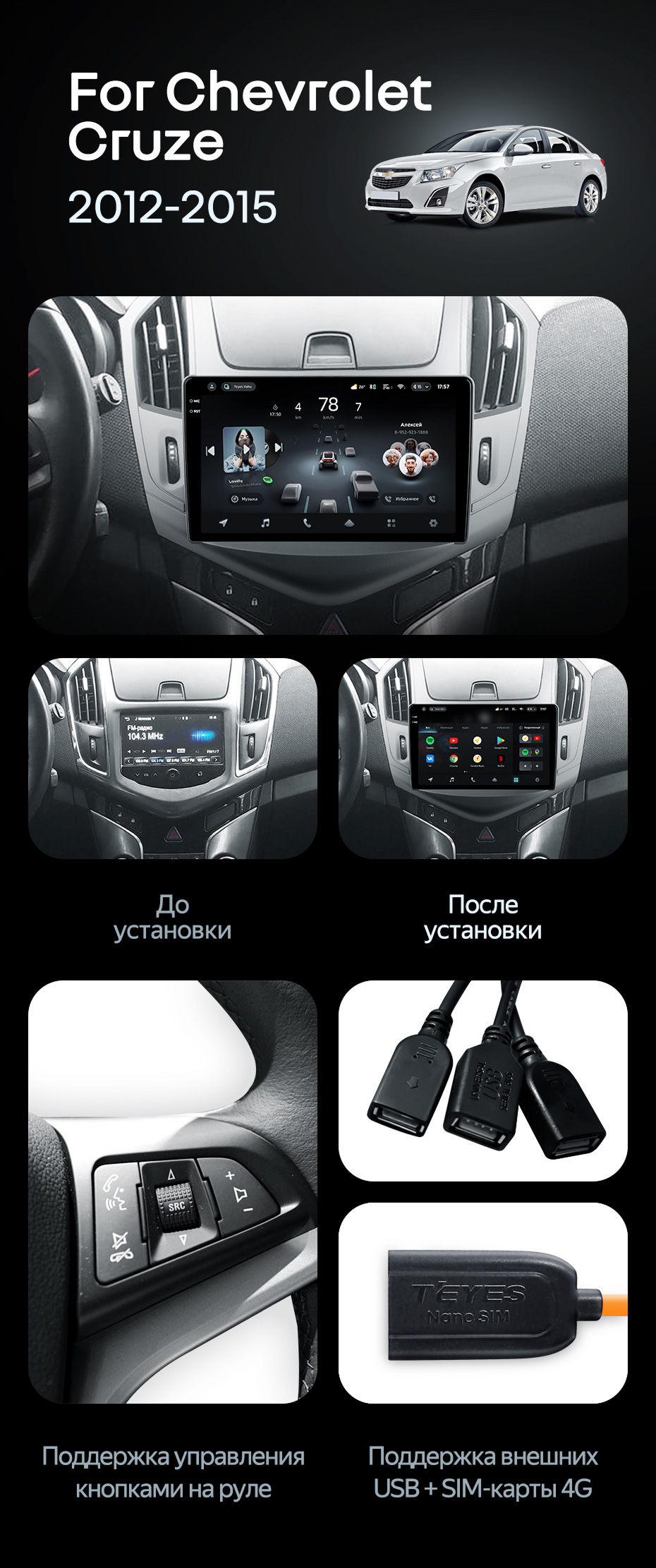 Штатная магнитола Teyes CC4 Pro 12/256 Chevrolet Cruze J300 J308 (2012-2015) - купить всего за 74 760 руб. в интернет-магазине в Воронеже Teyes.com.ru. ✓ Самый лучший выбор мультимедиа ✓ Лучшая замена штатному ГУ ✓ Тел. +7 (800) 775-31-74