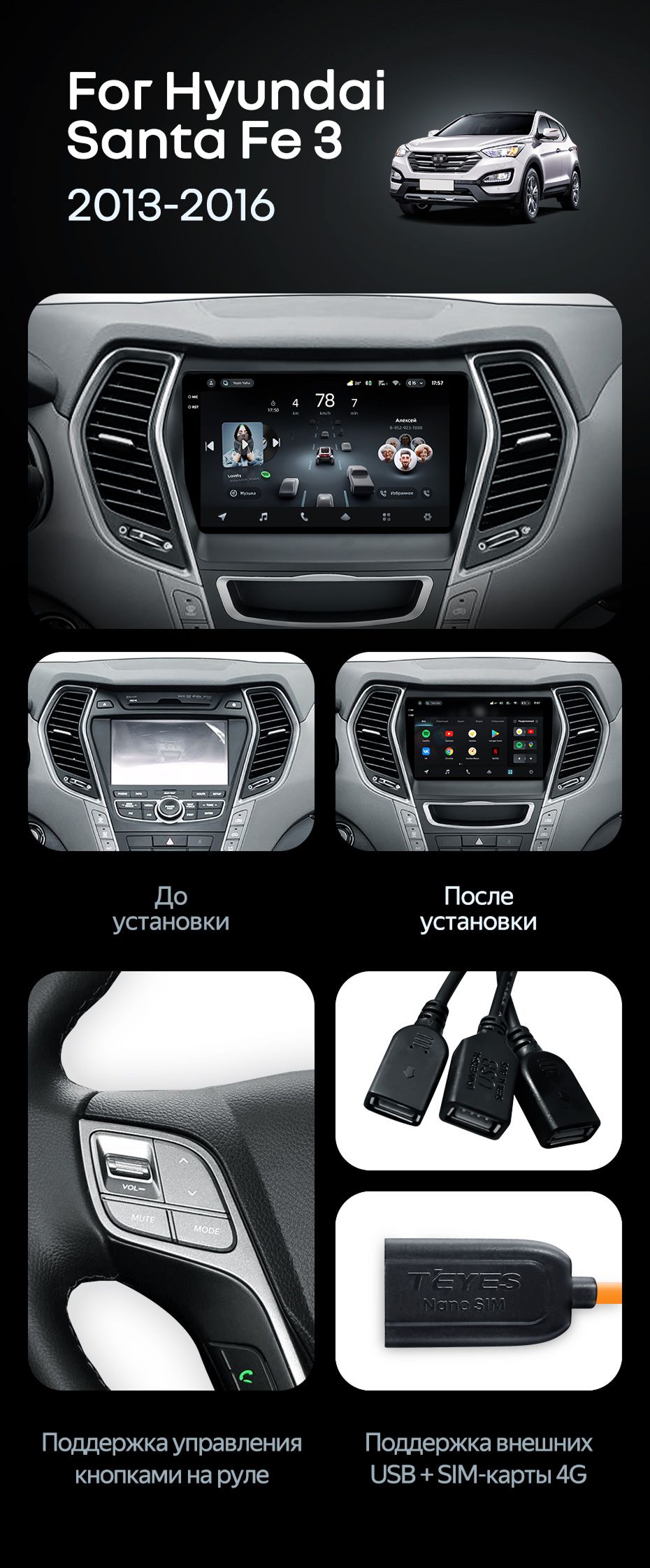 Штатная магнитола Teyes CC4 Pro 12/256 Hyundai Santa Fe 3 (2013-2016) Тип-B - купить всего за 74 610 руб. в интернет-магазине в Воронеже Teyes.com.ru. ✓ Самый лучший выбор мультимедиа ✓ Лучшая замена штатному ГУ ✓ Тел. +7 (800) 775-31-74