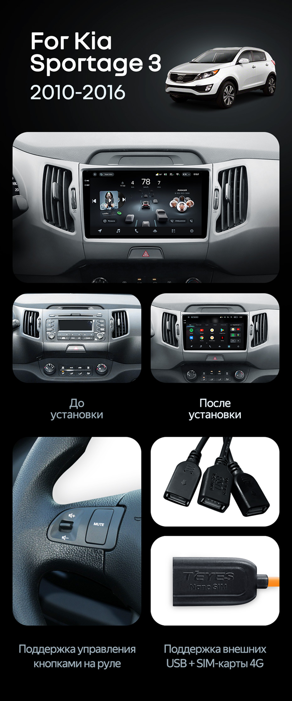 Штатная магнитола Teyes CC4 Pro 12/256 Kia Sportage 3 SL (2010-2016) Тип-A - купить всего за 65 890 руб. в интернет-магазине в Воронеже Teyes.com.ru. ✓ Самый лучший выбор мультимедиа ✓ Лучшая замена штатному ГУ ✓ Тел. +7 (800) 775-31-74