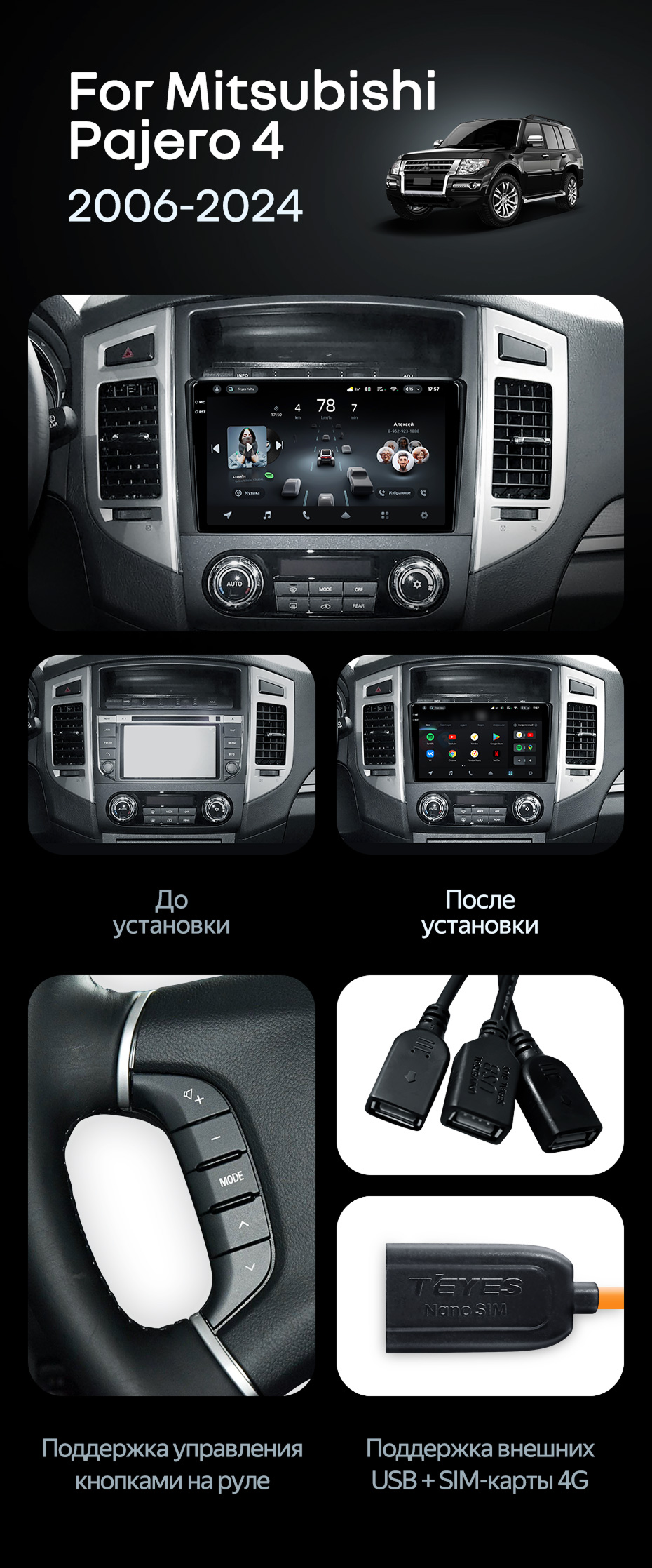 Штатная магнитола Teyes CC4 Pro 12/256 Mitsubishi Pajero 4 V80 V90 (2006-2024) - купить всего за 73 850 руб. в интернет-магазине в Воронеже Teyes.com.ru. ✓ Самый лучший выбор мультимедиа ✓ Лучшая замена штатному ГУ ✓ Тел. +7 (800) 775-31-74