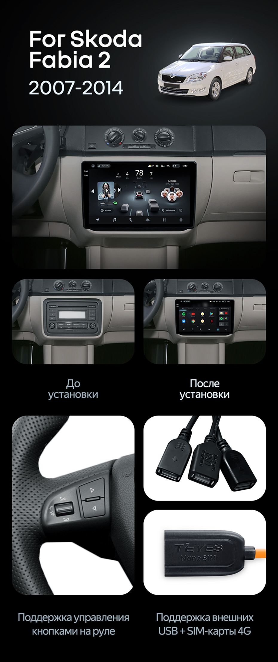 Штатная магнитола Teyes CC4 Pro 360 8/128 Skoda Fabia 2 (2007-2014) - купить всего за 86 580 руб. в интернет-магазине в Воронеже Teyes.com.ru. ✓ Самый лучший выбор мультимедиа ✓ Лучшая замена штатному ГУ ✓ Тел. +7 (800) 775-31-74