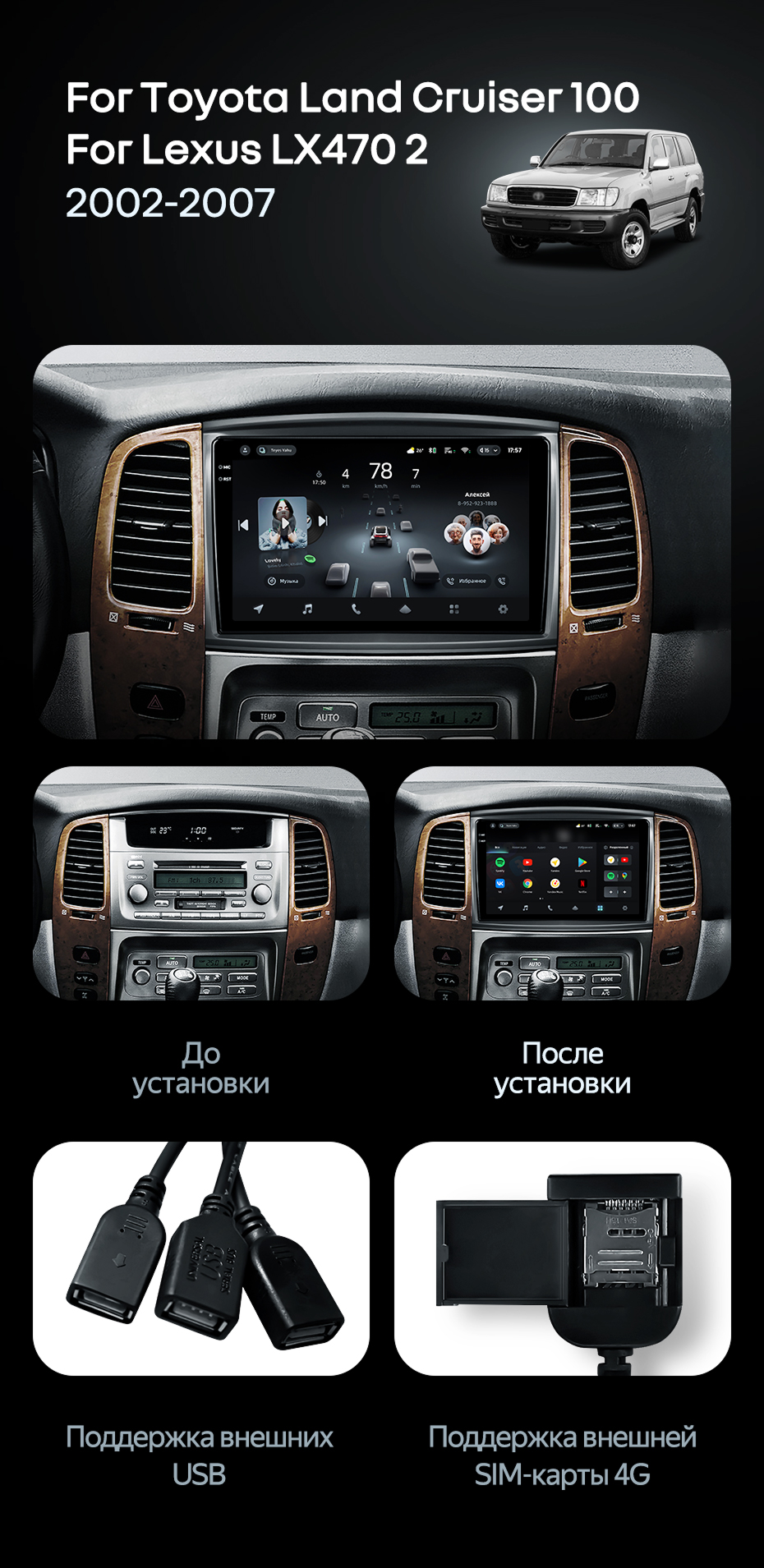 Штатная магнитола Teyes CC4 Pro 8/128 Toyota Land Cruiser LC 100 (2002-2007) Тип-B - купить всего за 65 820 руб. в интернет-магазине в Воронеже Teyes.com.ru. ✓ Самый лучший выбор мультимедиа ✓ Лучшая замена штатному ГУ ✓ Тел. +7 (800) 775-31-74