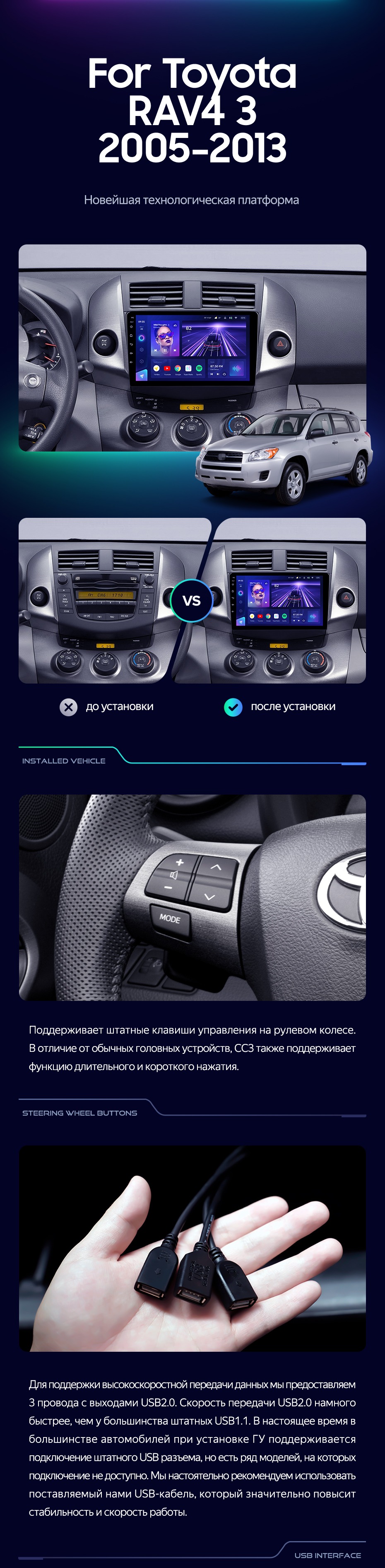 Штатная магнитола Teyes CC4 Pro 8/128 Toyota RAV4 3 XA30 (2005-2013) F2 (13") - купить всего за 70 600 руб. в интернет-магазине в Воронеже Teyes.com.ru. ✓ Самый лучший выбор мультимедиа ✓ Лучшая замена штатному ГУ ✓ Тел. +7 (800) 775-31-74