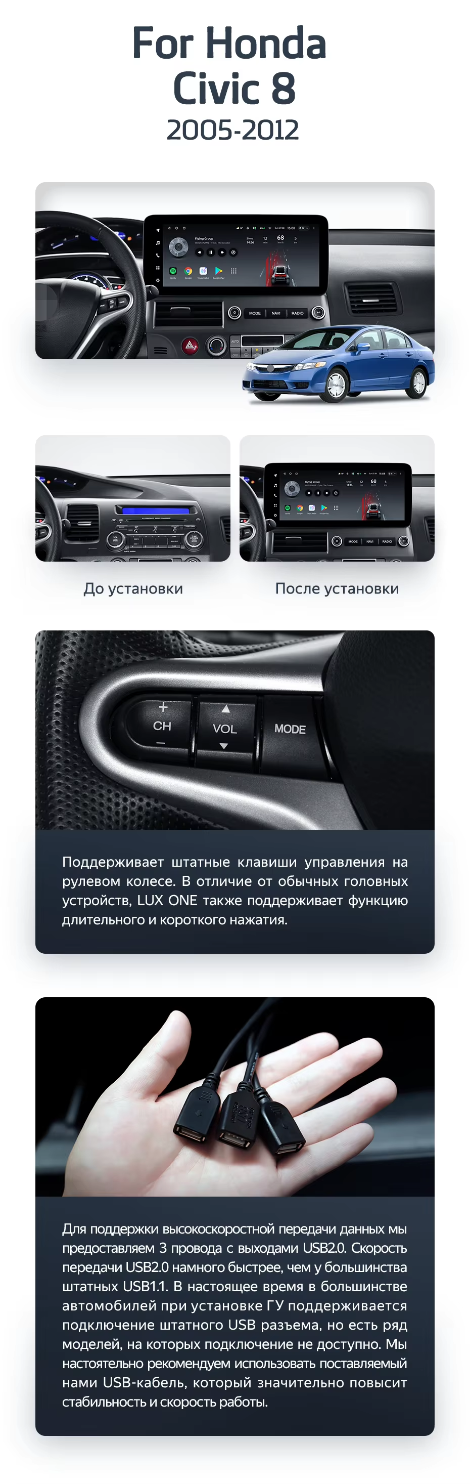 Штатная магнитола Teyes LUX ONE 4/32 Honda Civic 8 FK FN FD (2005-2012) - купить всего за 43 100 руб. в интернет-магазине в Воронеже Teyes.com.ru. ✓ Самый лучший выбор мультимедиа ✓ Лучшая замена штатному ГУ ✓ Тел. +7 (800) 775-31-74