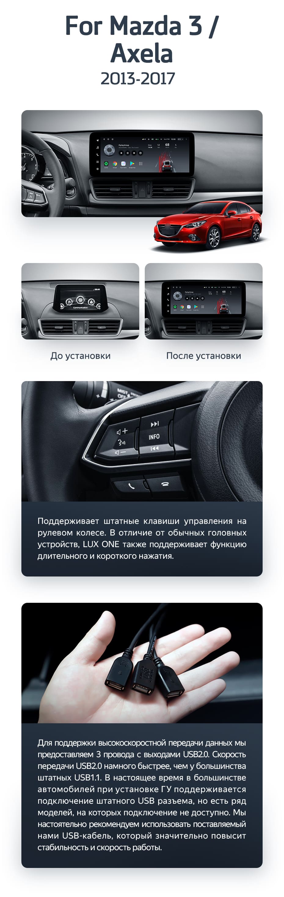 Штатная магнитола Teyes LUX ONE 4/32 Mazda Axela 3 (2013-2017) Тип-A Правый руль - купить всего за 41 900 руб. в интернет-магазине в Воронеже Teyes.com.ru. ✓ Самый лучший выбор мультимедиа ✓ Лучшая замена штатному ГУ ✓ Тел. +7 (800) 775-31-74
