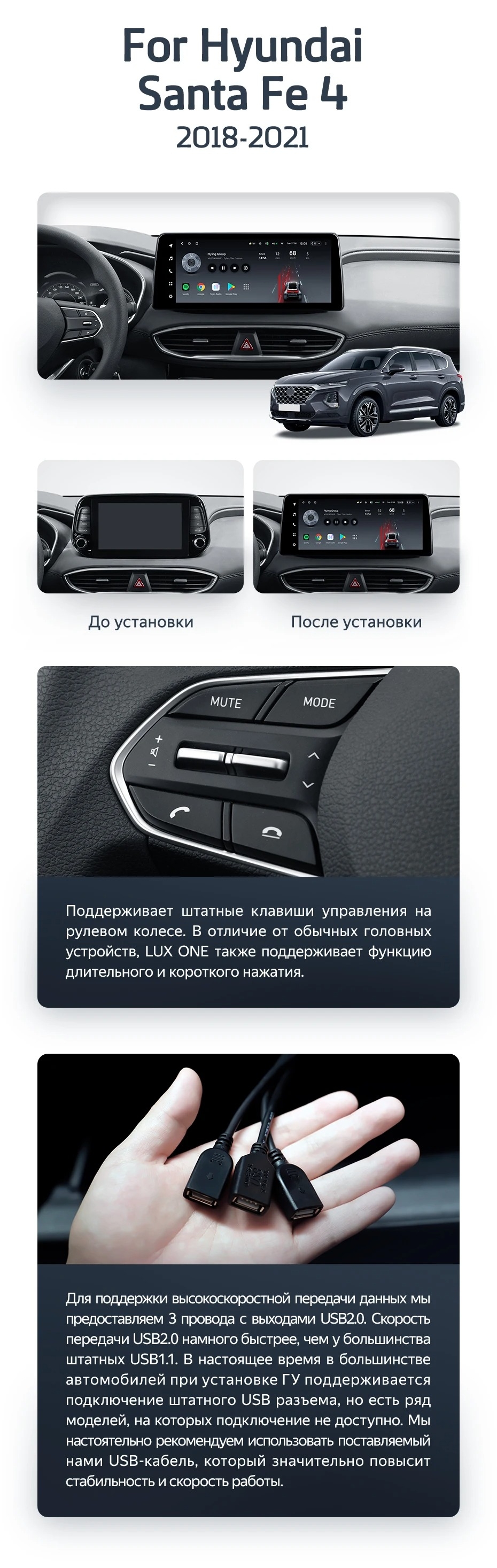 Штатная магнитола Teyes LUX ONE 6/128 Hyundai Santa Fe 4 (2018-2021) - купить всего за 53 300 руб. в интернет-магазине в Воронеже Teyes.com.ru. ✓ Самый лучший выбор мультимедиа ✓ Лучшая замена штатному ГУ ✓ Тел. +7 (800) 775-31-74