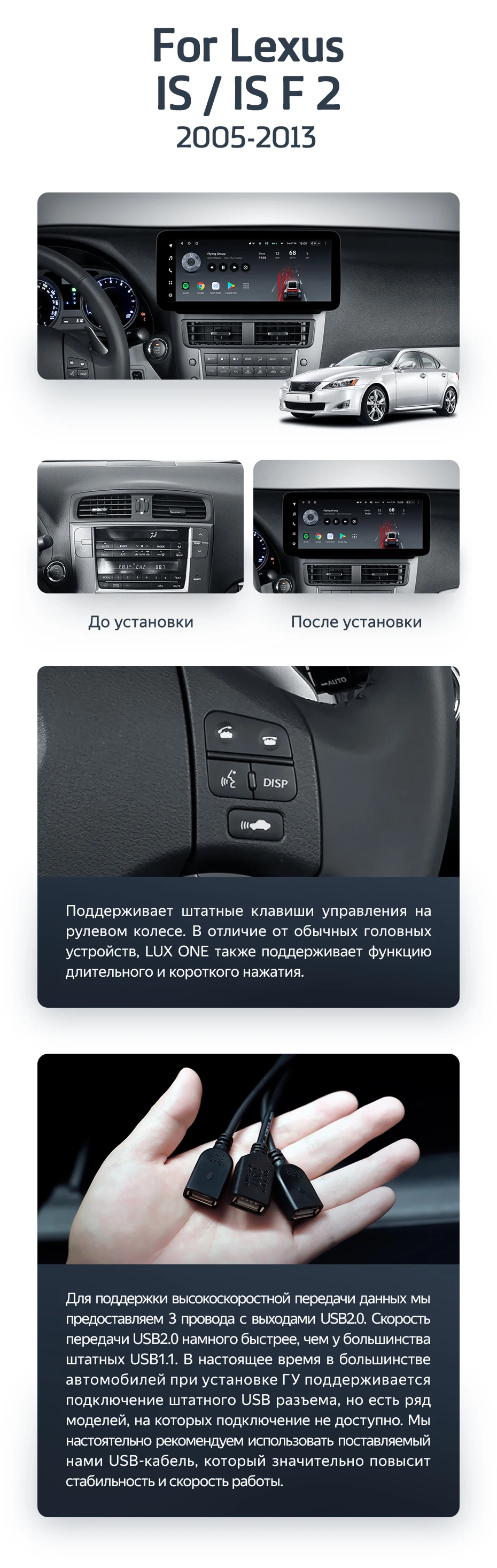 Штатная магнитола Teyes LUX ONE 6/128 Lexus IS F 200D 220D 250 250C 300 350 350C 2 XE20 (2005-2013) - купить всего за 64 100 руб. в интернет-магазине в Воронеже Teyes.com.ru. ✓ Самый лучший выбор мультимедиа ✓ Лучшая замена штатному ГУ ✓ Тел. +7 (800) 775-31-74