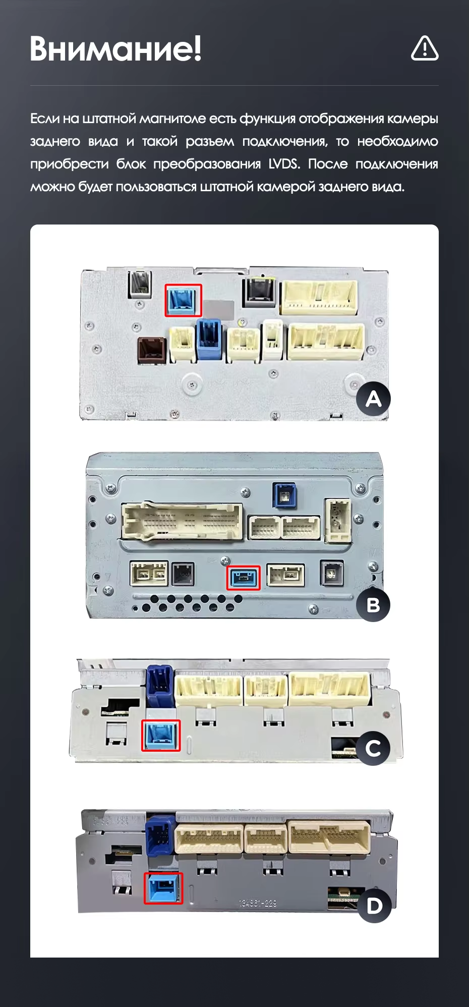 Обратная связь с камерой заднего вида: Упростите парковку и маневрирование с помощью камеры заднего вида. Отображение на дисплее позволяет вам видеть препятствия и пространство за автомобилем, обеспечивая дополнительную безопасность.