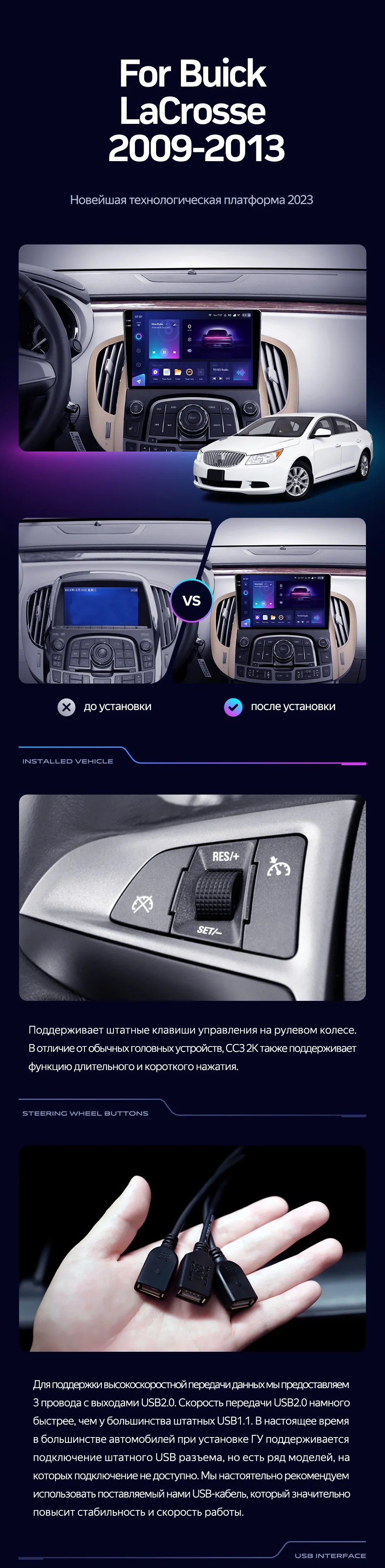 Полный комплект установки магнитолы Teyes с рамкой и проводкой можно выбрать в каталоге штатных магнитол Buick Lacrosse (2009-2013).