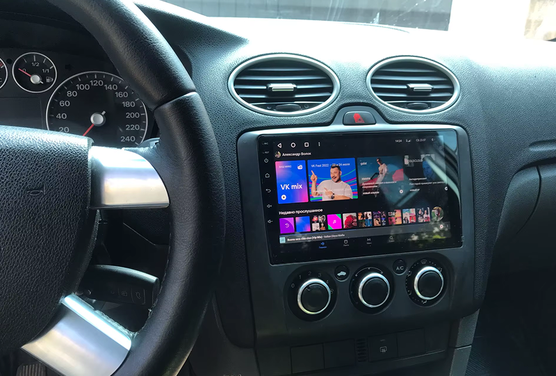 Готовый установочный комплект для магнитолы Ford Focus 2 (2004-2011) (F1 - кондиционер) (чёрная) 9 дюймов в штатное место, включает переходную рамку и проводку.