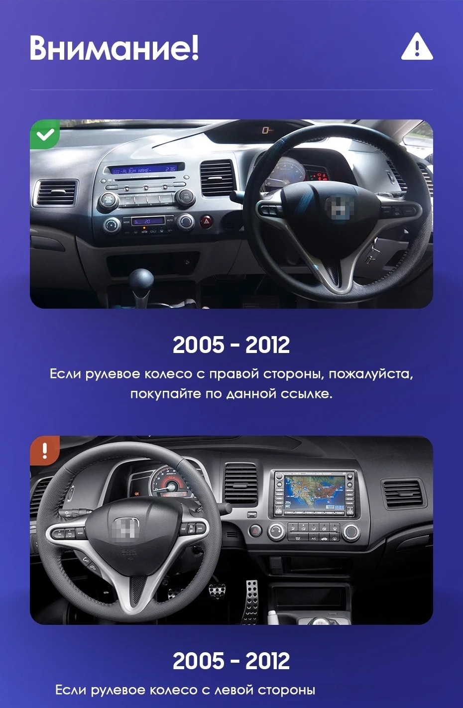 Полный комплект установки магнитолы Teyes с рамкой и проводкой можно выбрать в каталоге штатных магнитол Honda Civic 8 FK FN FD (2005-2012).