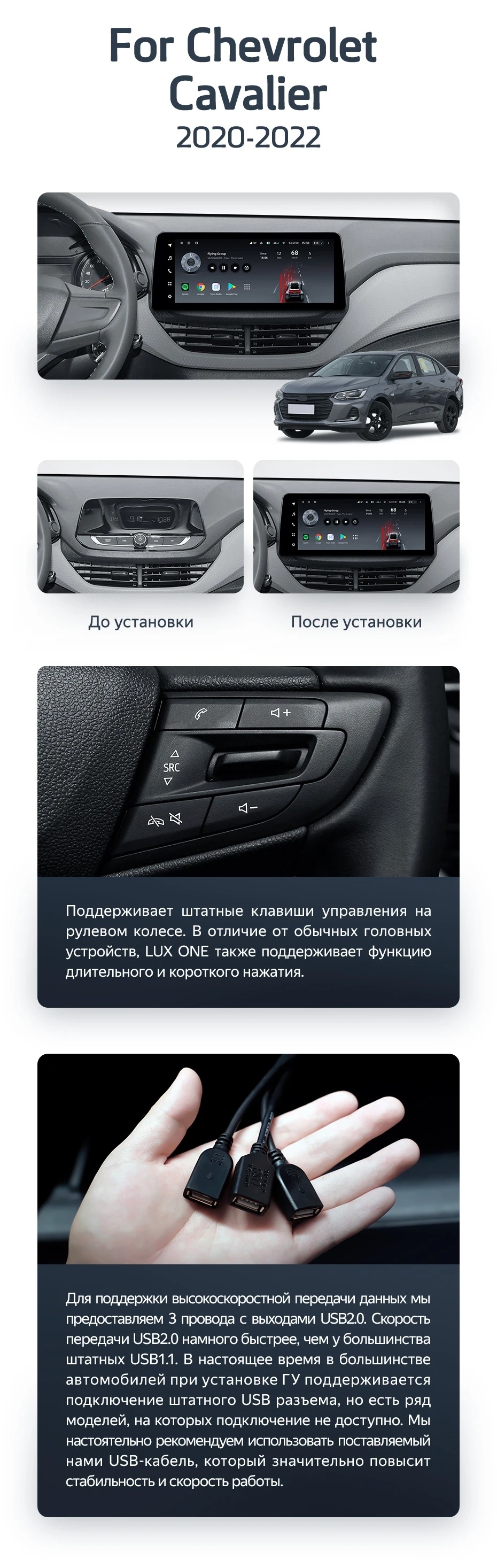 Полный комплект установки магнитолы Teyes с рамкой и проводкой можно выбрать в каталоге штатных магнитол Chevrolet Cavalier (2020-2022).
